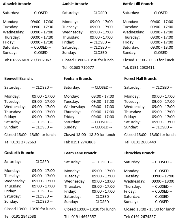 Our branch opening hours are subject to change.